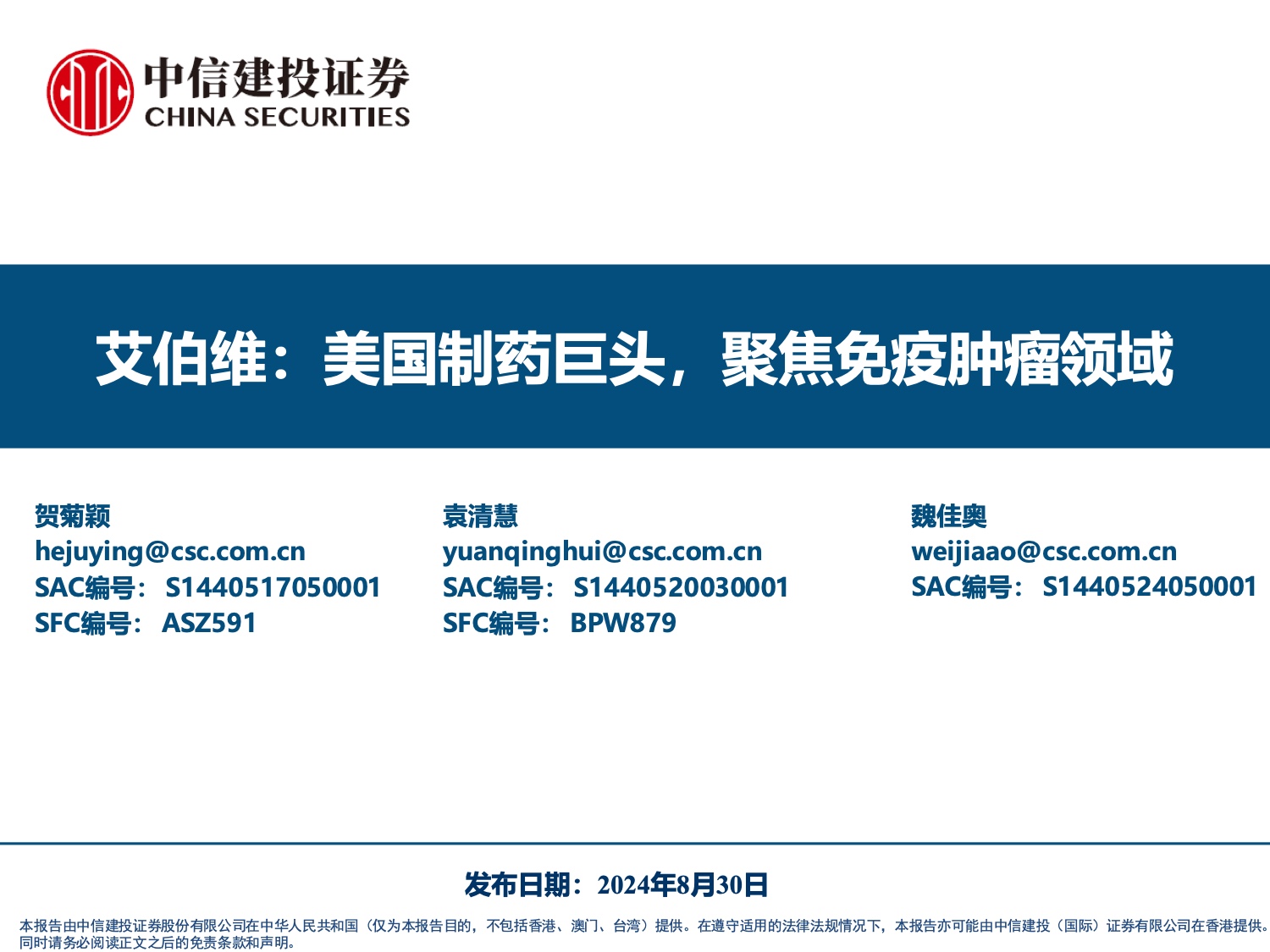 艾伯维:美国制药巨头聚焦免疫肿瘤领域